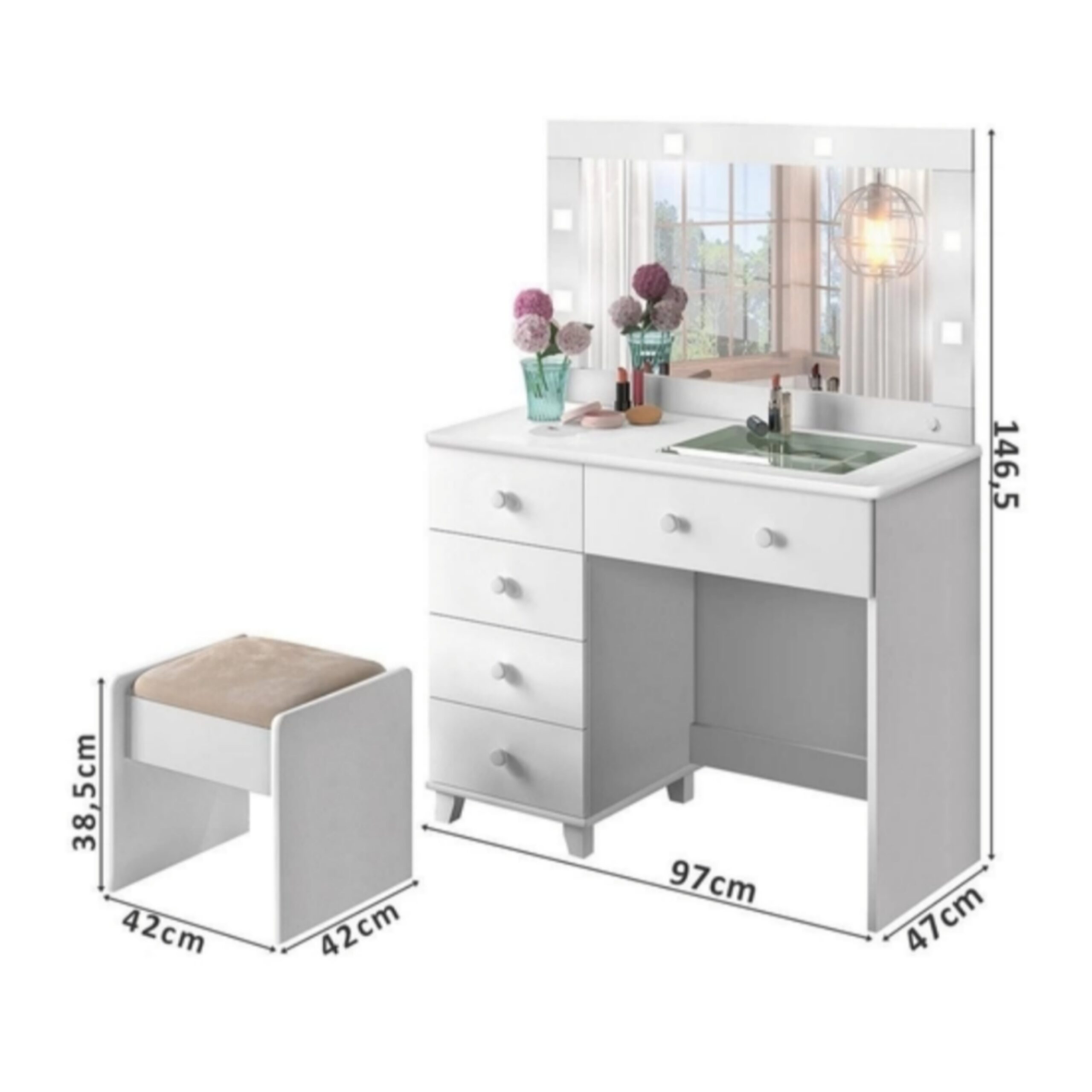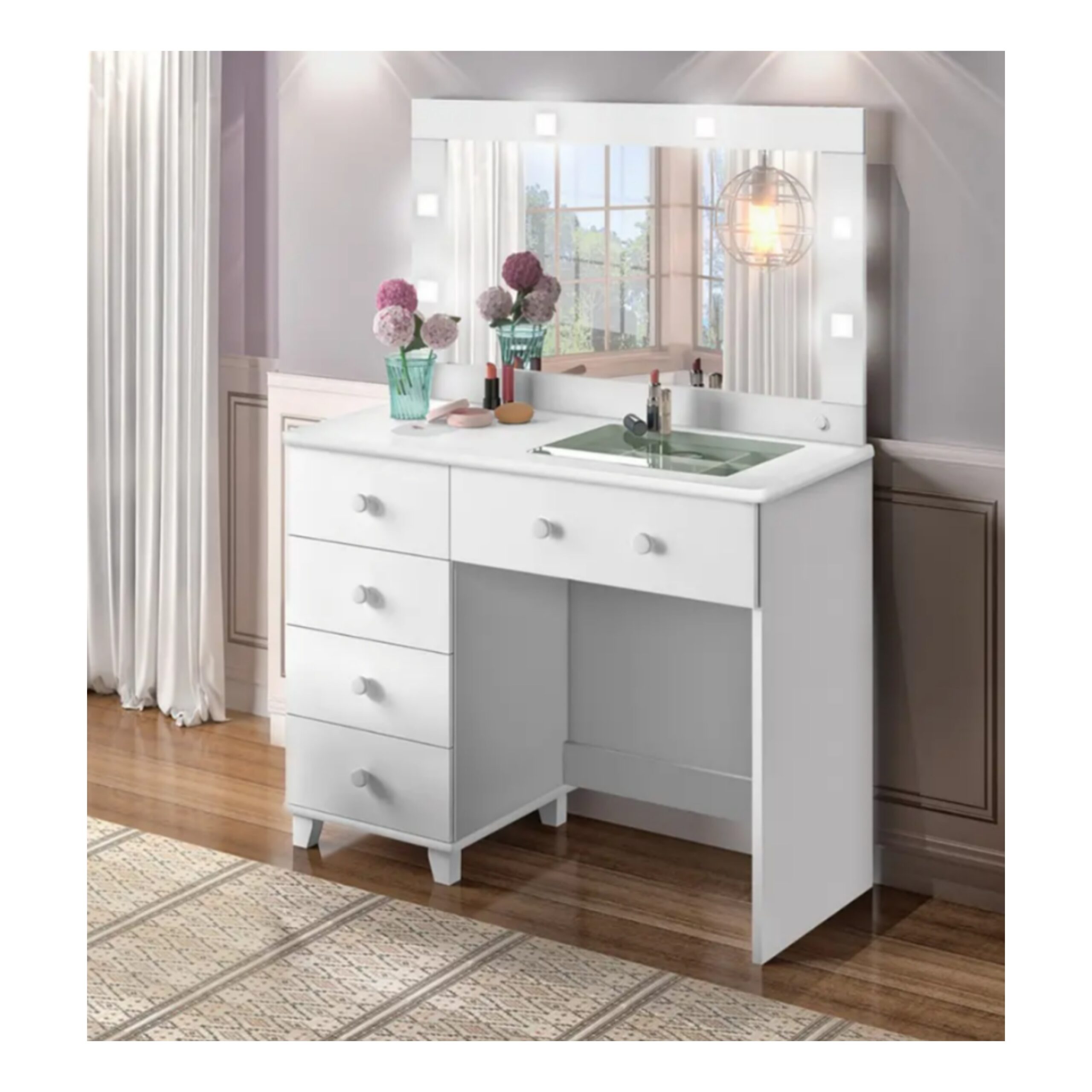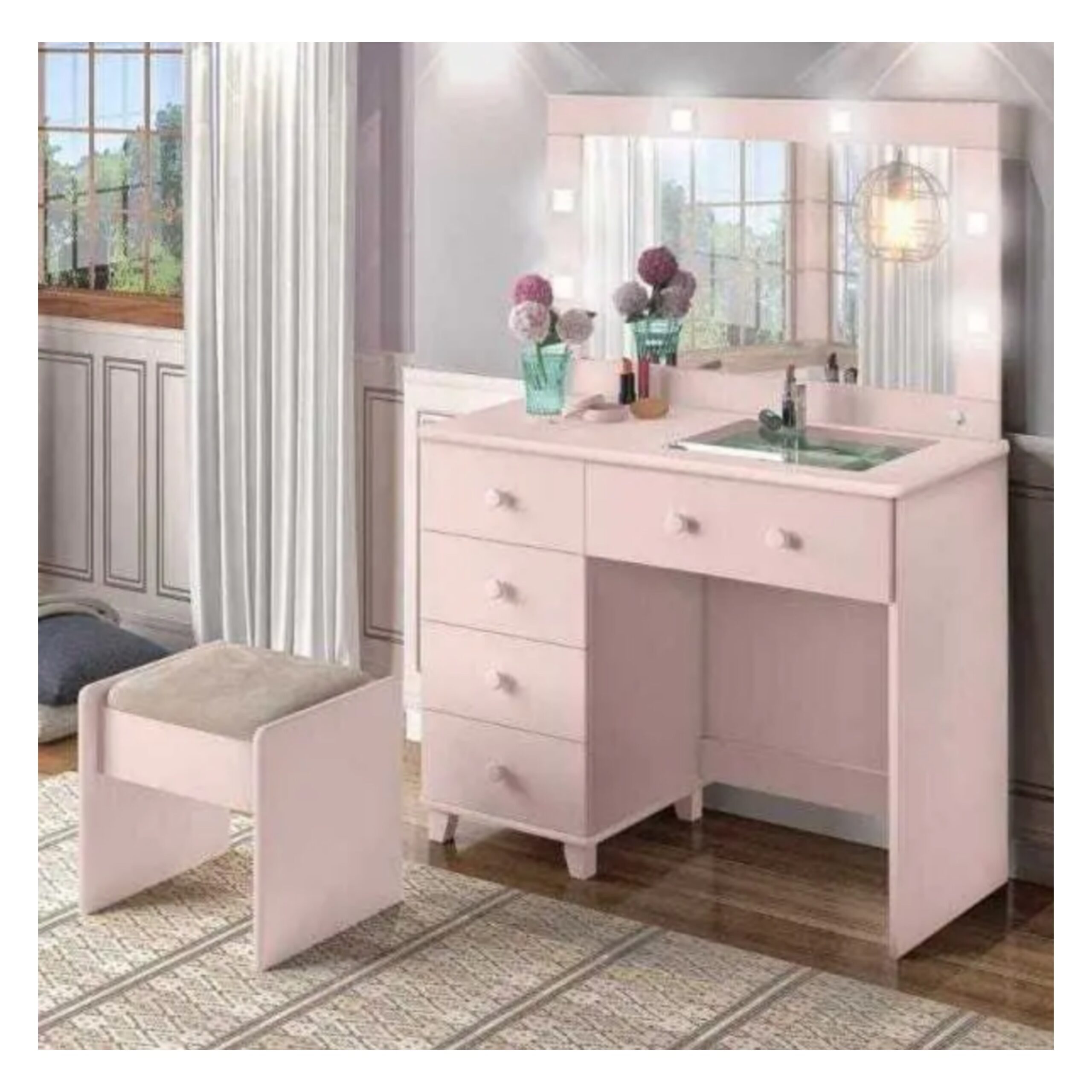 - Cor: Branco Brilho e Rose